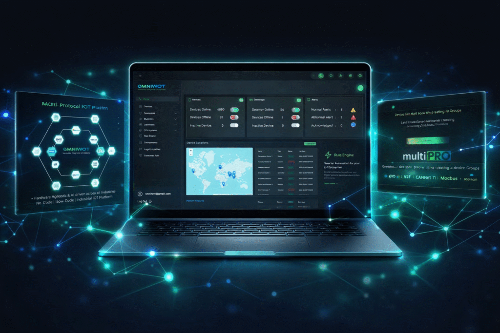 OmniWOT delivers intelligent IoT solutions for real-time monitoring, automation, AI dashboards, and Simplified Digital Twin experiences — helping businesses improve visibility and make faster, data-driven decisions.